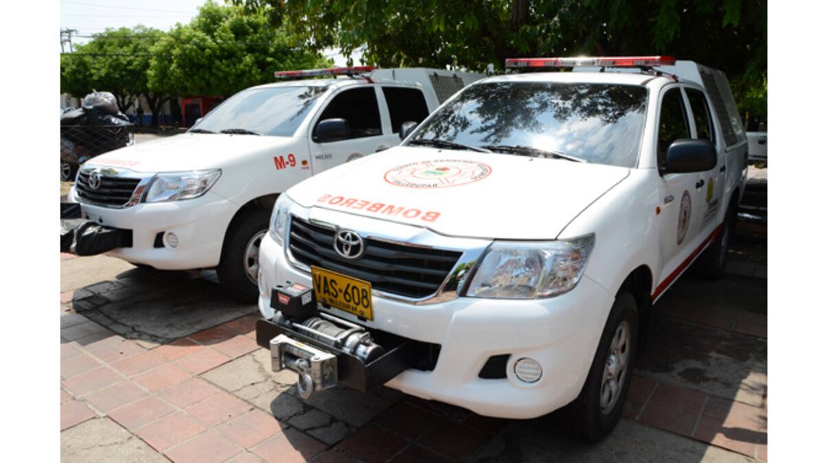 Respondiendo un derecho de petición, el comandante (e) del Cuerpo de Bomberos de Valledupar, Fernando Augusto Ramírez, confirmó la donación de las camionetas marca Toyota Hilux doble cabina modelos 2013 y 2014 que fueron recibidas para ser utilizadas como vehículos de reacción, teniendo en cuenta que vienen equipados con una bomba de ultra presión, con capacidad para expulsar hasta 120 galones de agua y 30 de espuma.