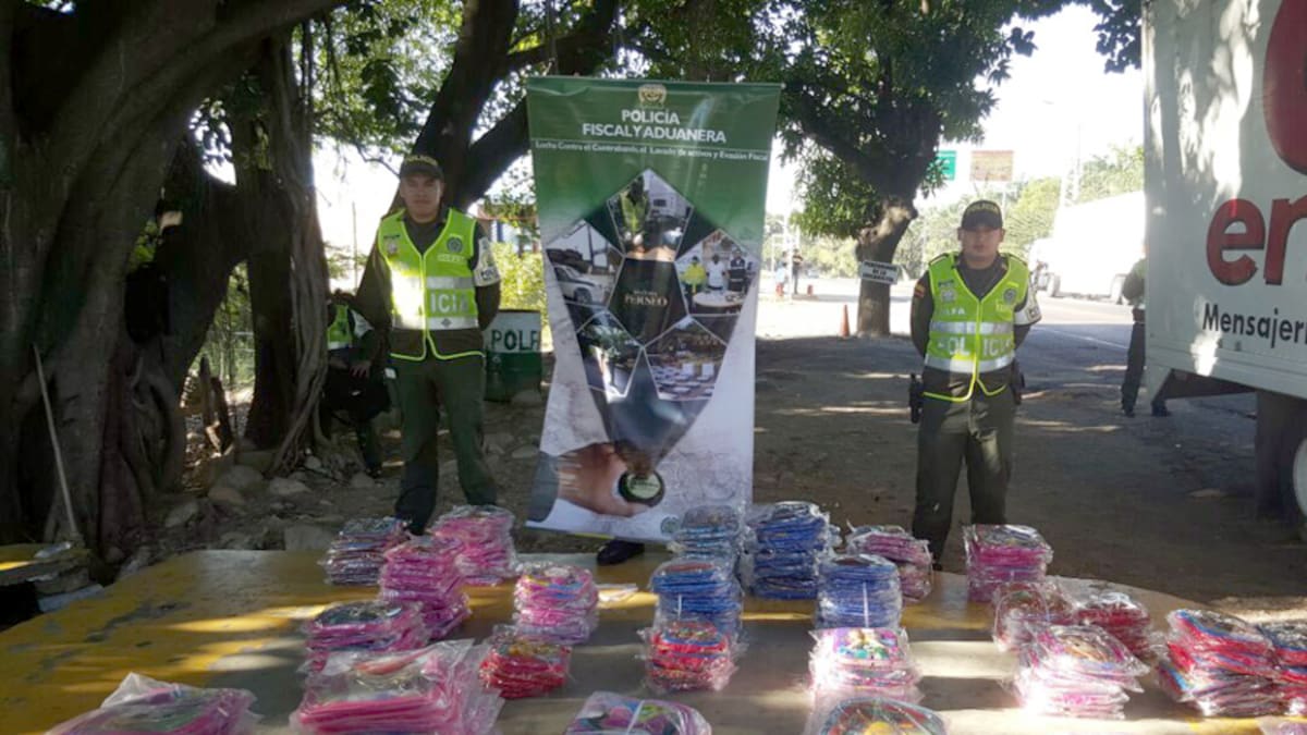 De acuerdo con la Policía Fiscal y Aduanera, la mayor parte de esta mercancía proviene de China, entrando a Colombia por los puertos del Pacífico y Atlántico, siendo transportada en barcos. Una vez en el país, estos útiles se camuflan con otros legalizados y se transportan desde ciudades como Cali y Barranquilla a capitales intermedias a través de empresas de transportes y vehículos particulares.