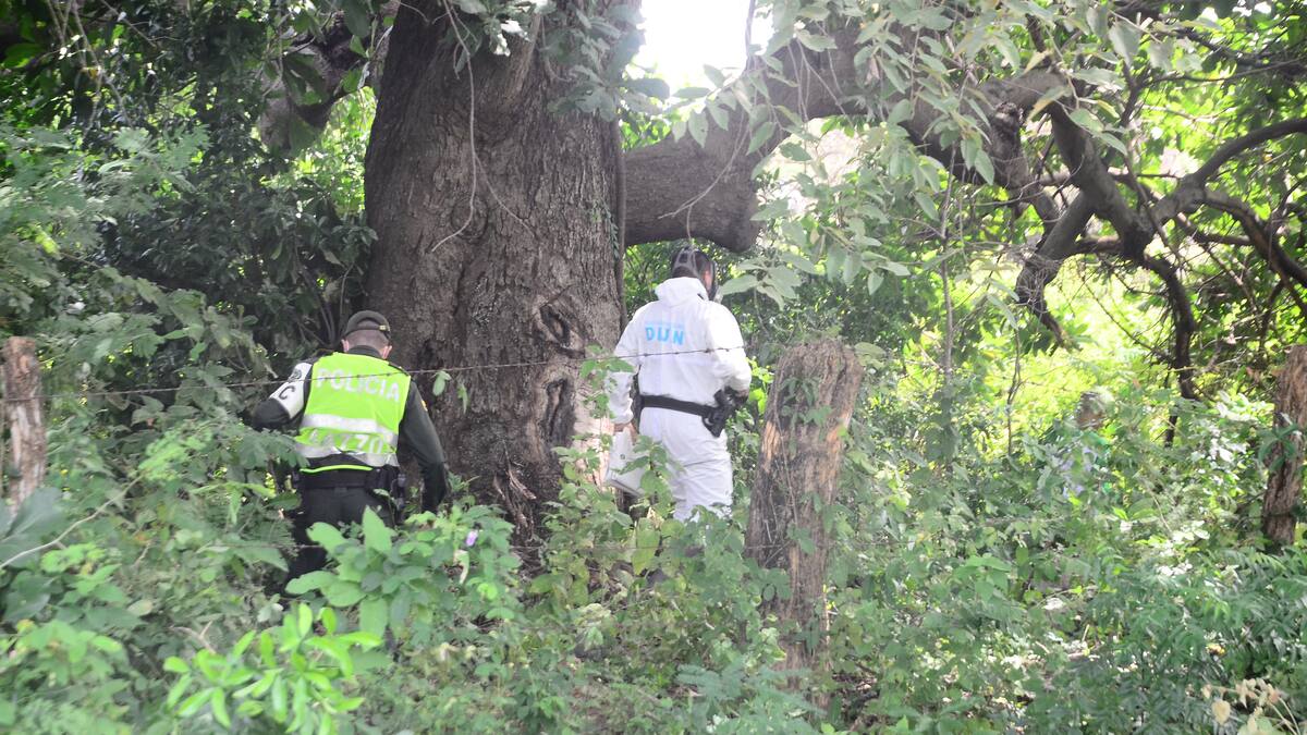La Policía y un grupo de la Sijín tuvieron que ingresar a unos 500 metros de trocha hasta llegar a donde se encontraba el cuerpo para proceder con la inspección técnica y trasladarlo hasta Medicina Legal.