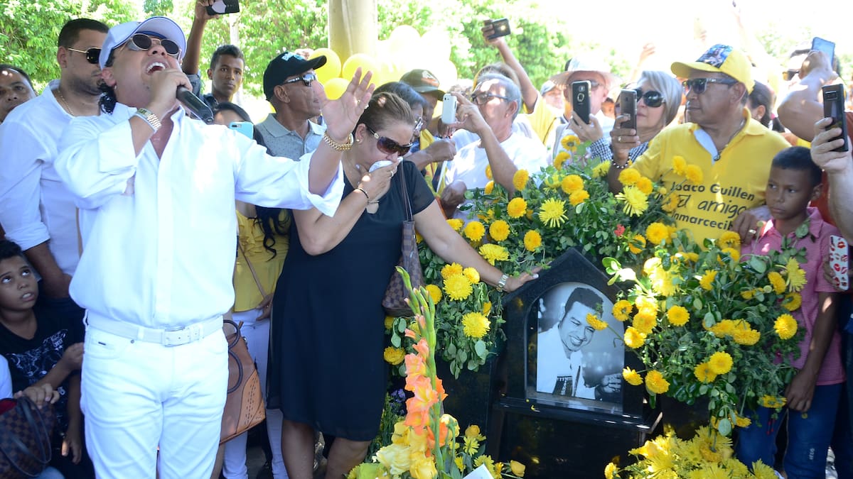 La tumba fue adornada con flores amarillas y alrededor fueron puestas vallas metálicas de la Policía para controlar la multitud que llegó a conmemorar el año de muerte de su ídolo. El silencio del campo santo se interrumpió con las notas de los acordeones y los cantos de Los Niños del Vallenato de la escuela Rafael Escalona, luego un mariachi entonó algunas rancheras y canciones de Martín Elías, para darle paso después a Rafael Santos y Luis Ángel, quienes interpretaron los temas que más le gustaban al artista fallecido, como La Doctora de la autoría de su padre, Diomedes Díaz; Rafael Santos igualmente cantó En un abrir y cerrar de ojos, una composición póstuma en honor a su hermano.