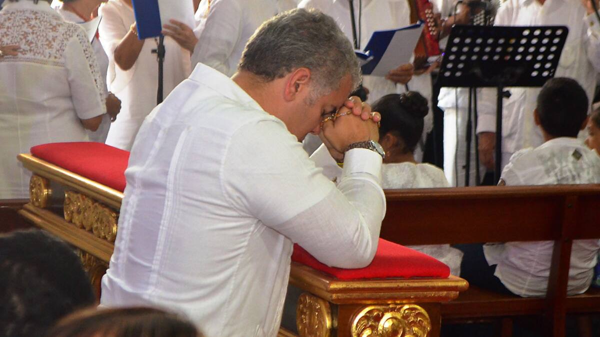En un acto de devoción, el presidente Iván Duque, se arrodilló la mañana de este lunes ante la imagen del Ecce-Homo, patrono de los vallenatos. Aunque se desconoce si el Jefe de Estado hizo una petición especial al santo considerado milagroso, estuvo presente en la misa central, que comenzó más tarde de lo acostumbrado, esperando el arribo del mandatario a la iglesia Inmaculada Concepción.