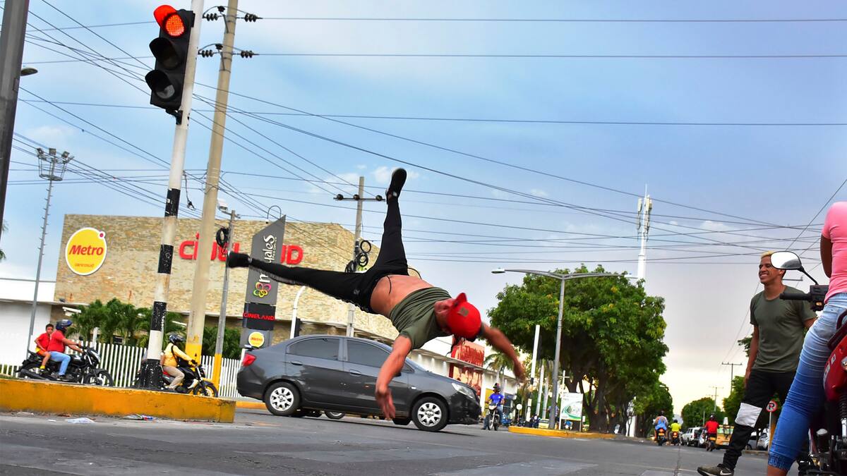 Los semáforos en la capital del Cesar se han convertido en sitio de rebusque para decenas de personas que buscan ganarse la vida desarrollando todo tipo de actividades informales. Malabaristas, vendedores de agua, de frutas, dulces, limpiavidrios, bailarines y hasta payasos, hacen parte del variado ‘comercio’ que crece sin control en las principales intersecciones viales de la ciudad. También hay venezolanos que recurren a la solidaridad, pidiendo dinero con mensajes escritos en cartones.