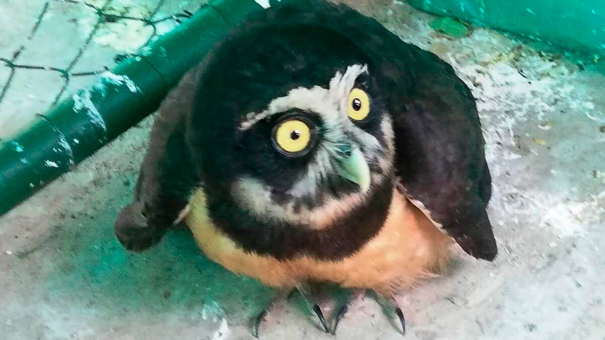 Un ejemplar de búho de anteojos (pulsatrix perspicillata), también conocido como lechuzón de anteojos, fue rescatado y entregado a la seccional de Aguachica de Corpocesar, con un grave golpe tras chocar con cables eléctricos.