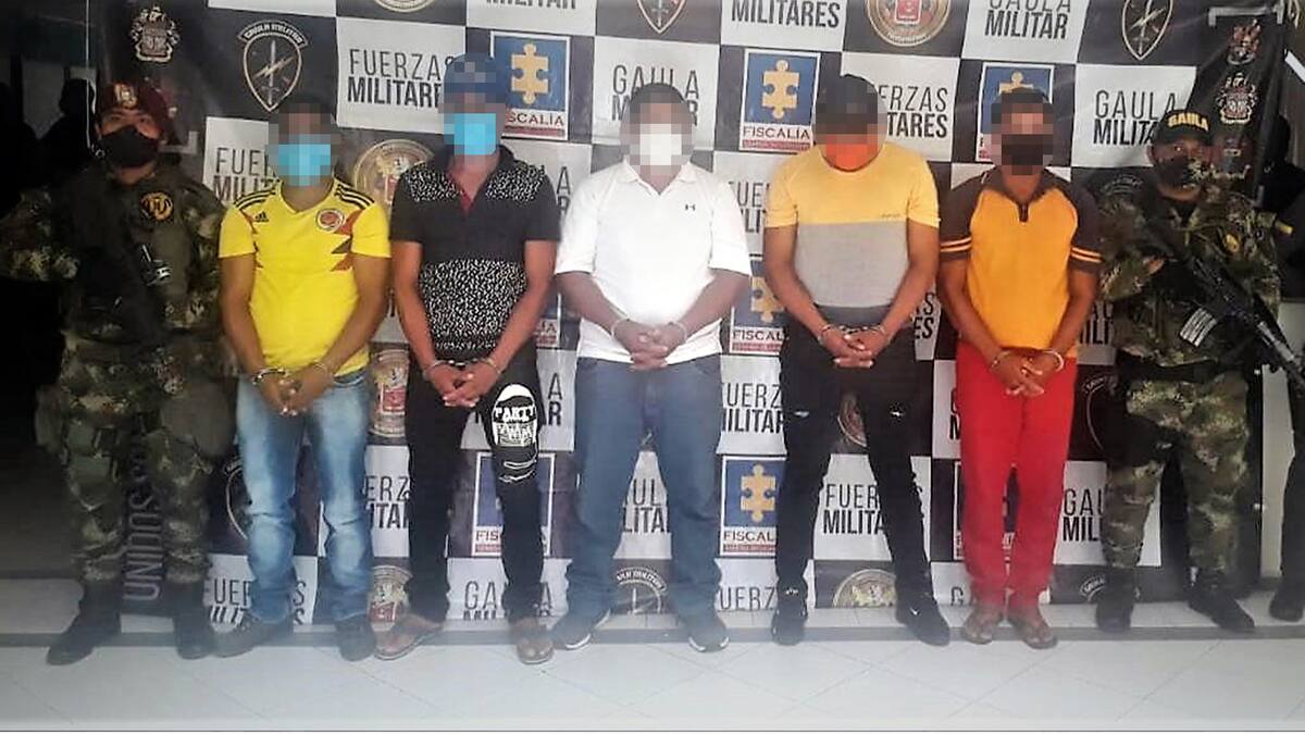 Los detenidos fueron identificados como César Enrique Molina Cervantes, Luis Alberto Fonseca, Juan Carlos Vanegas Daza, Jesús Alberto Vivero y Richard Alejandro Ruizdíaz Castro, sindicados por la Fiscalía primera especializada adscrita al Gaula Militar del Cesar como presuntos responsables de los delitos de extorsión agravada, extorsión tentada, secuestro y homicidio.