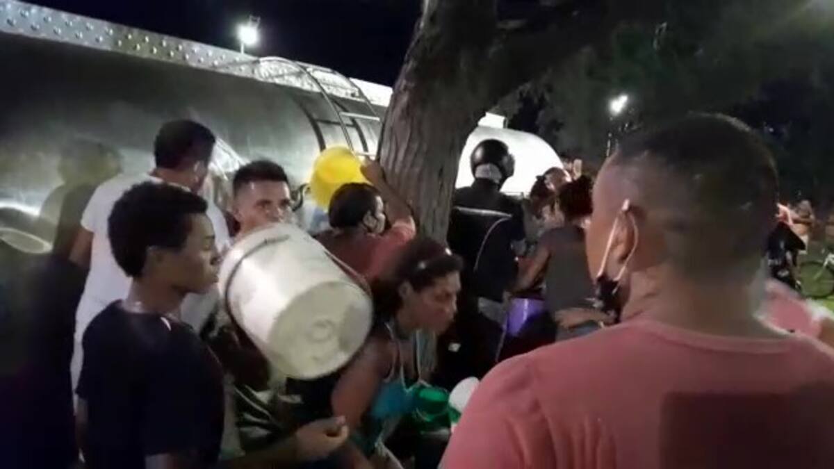 No hubo toque de queda que valiera para decenas de personas que salieron con baldes, poncheras, canecas, ollas y cualquier otra vasija, para abastecerse en parte de los 10.000 litros de leche que transportaba un camión que se volcó en la glorieta del Terminal de Transportes de Valledupar.