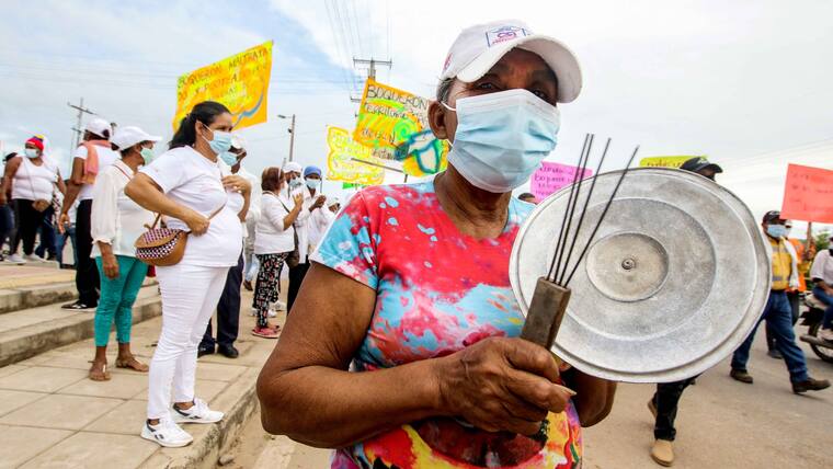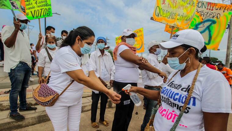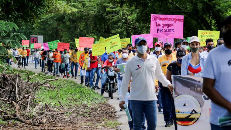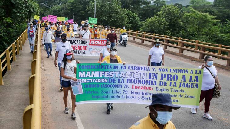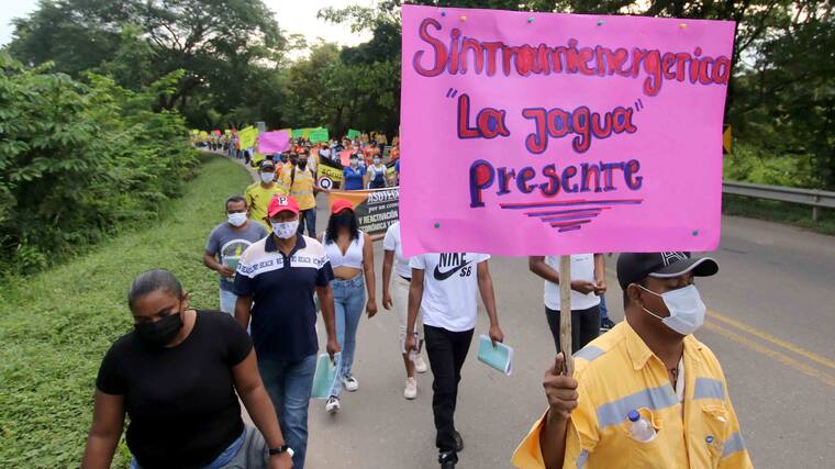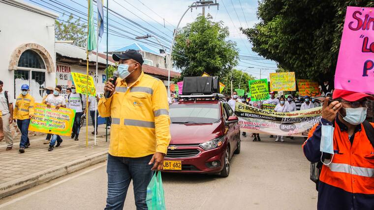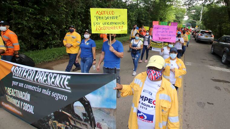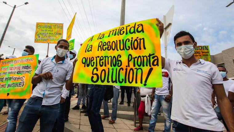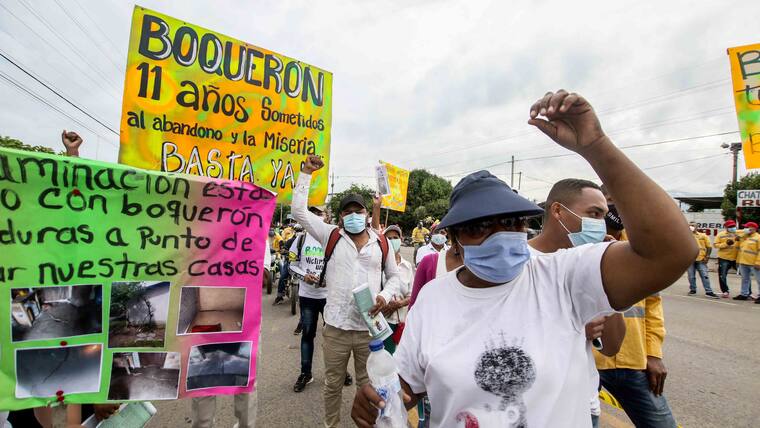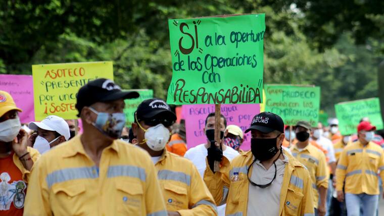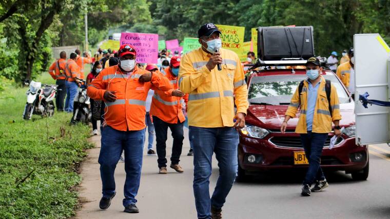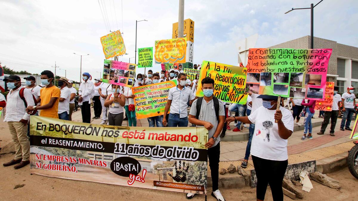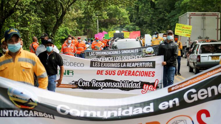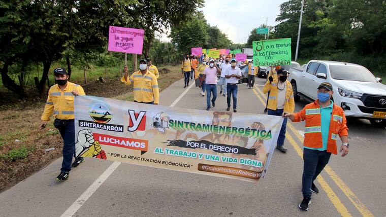 Trabajadores de la compañía Prodeco exigieron que se reanuden las operaciones en el área de extracción, suspendidas por cuenta de la pandemia. Fotos Cortesía.