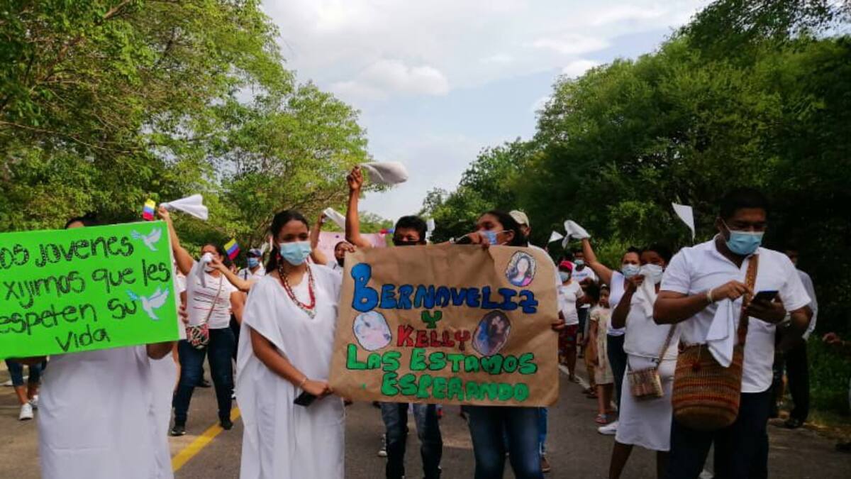 La comunidad de Rioseco-Makumake del Cabildo Kankuamo protestó en la vía principal de Río Seco para pedir que dos de sus integrantes regresen con vida y se les respete su integridad.