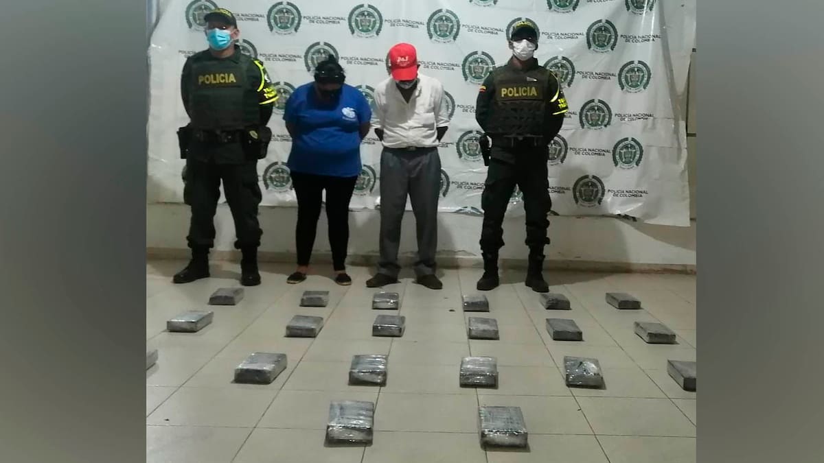 En la vía que de Bosconia conduce a Valledupar, a la altura del corregimiento Valencia de Jesús, la Policía capturó a un adulto mayor y a una mujer con 20 panelas de cocaína que transportaban en un vehículo.