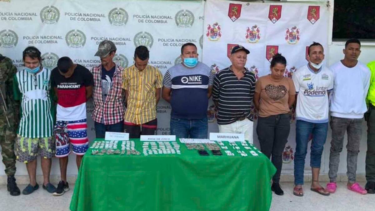 Así mismo fue capturada Ninfa Rosa Suárez Hernández, de 41 años, señalada por el delito de tráfico fabricación o porte de estupefacientes, quien al momento de la detención portaba 33 bolsas plásticas de marihuana, 28 bolsas de base de cocaína y 13 dosis de bazuco; Jesús Navarro Santiago, de 26 años; Alfonso Prado Barbosa, de 49 años, alias ‘El Tuerto’, con orden de captura vigente por los delitos de concierto para delinquir y tráfico, fabricación o porte de estupefaciente.
