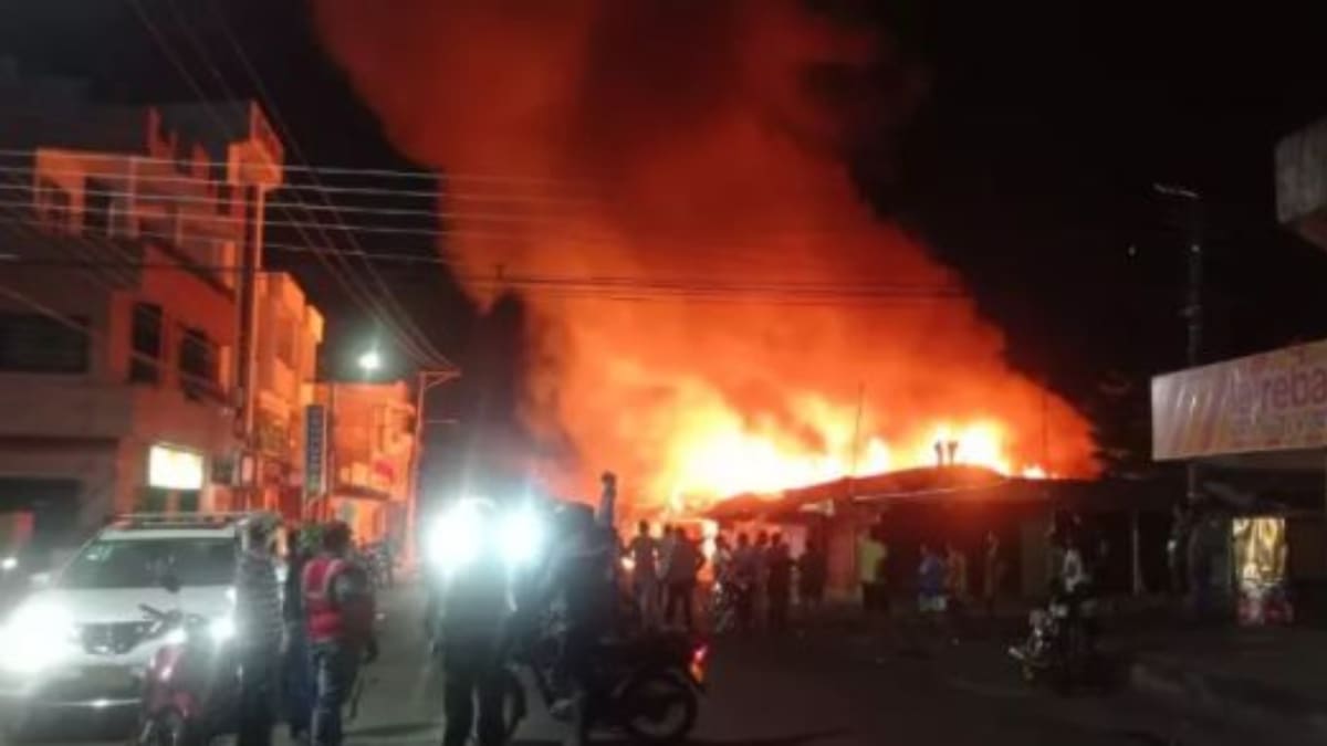 Al menos 18 locales comerciales fueron afectados por un un voraz incendio que se registró en la madrugada de este viernes en el parque San Antonio, en Aguachica (Cesar).