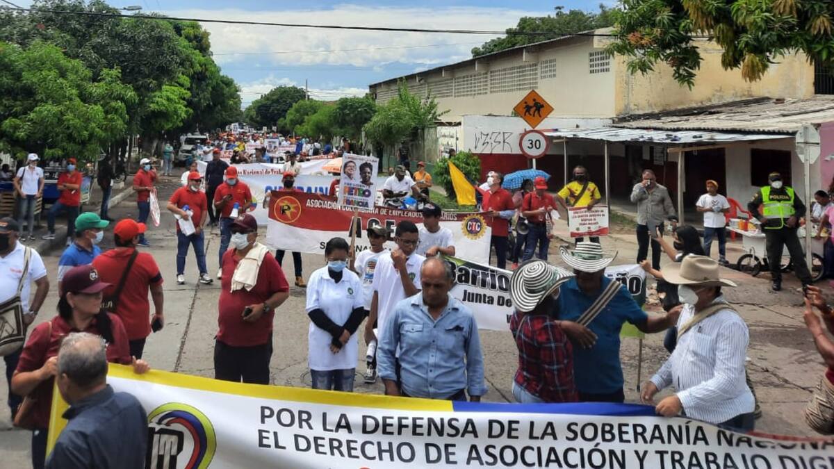 Trabajadores afiliados a 57 organizaciones sindicales en el departamento del Cesar, protagonizaron este domingo una marcha y protesta en el barrio Primero de Mayo en Valledupar, en contra de las políticas del Gobierno Duque.