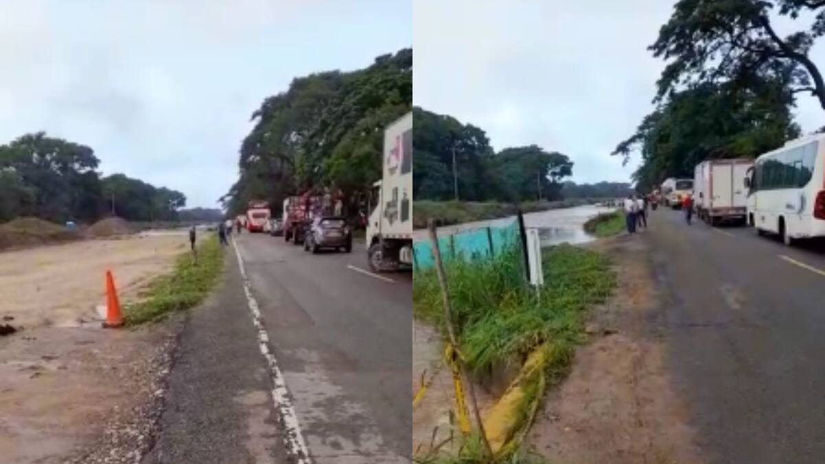 En videos que circulan en redes sociales, personas que se encuentran en el sitio, reportaron además que debido a las obras en la carretera a cargo de la concesionaria Yuma, se presenta el desbordamiento de las aguas, tras los fuertes aguaceros que caen en la región.