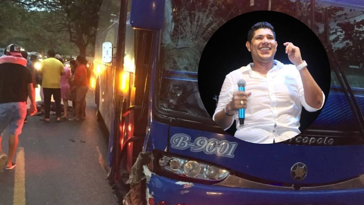 Las primeras informaciones indican que el motociclista resultó herido, mientras que quienes ocupaban el bus, entre esos Kbeto, salieron ilesos del siniestro, aunque terminaron colisionando con un árbol.