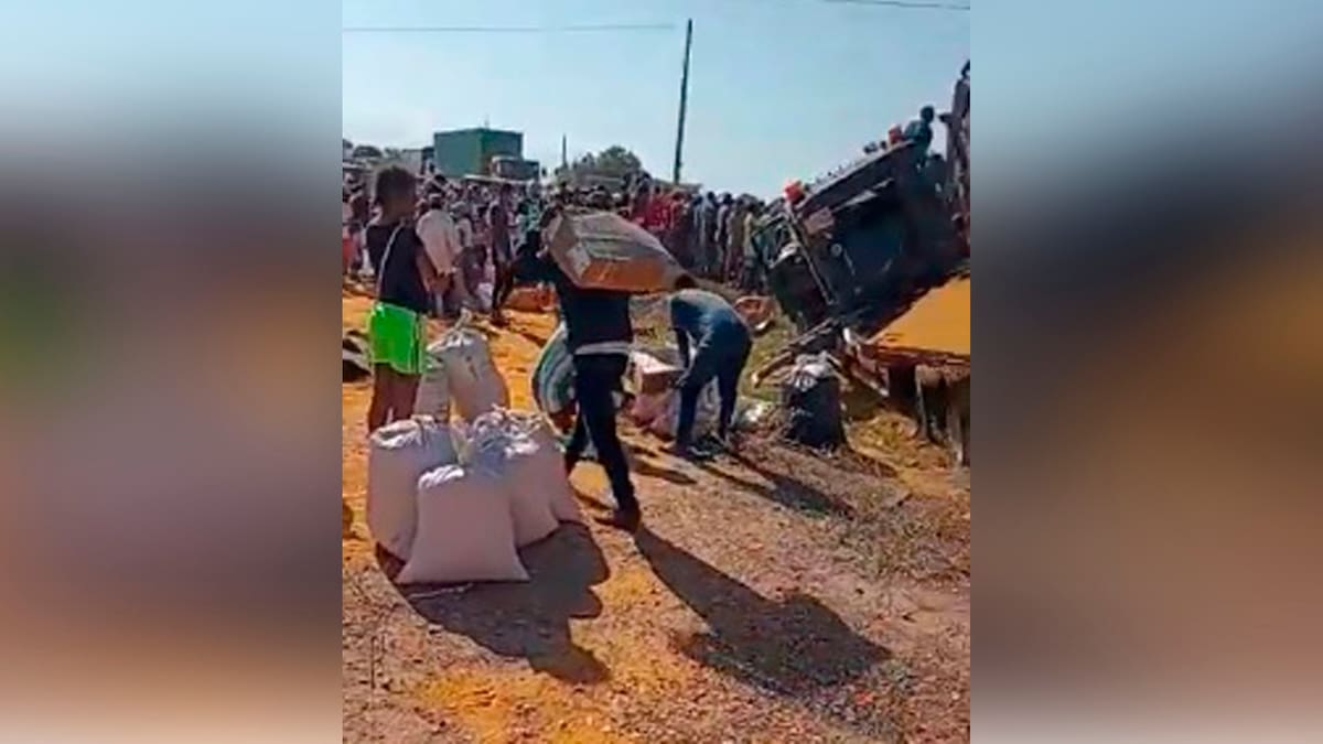 El hecho quedó registrado en video aficionado, donde se observan a personas tomando la carga del camión que se accidentó. 'La gente tiene hambre', fueron las palabras de uno de los testigos que grababa al momento.