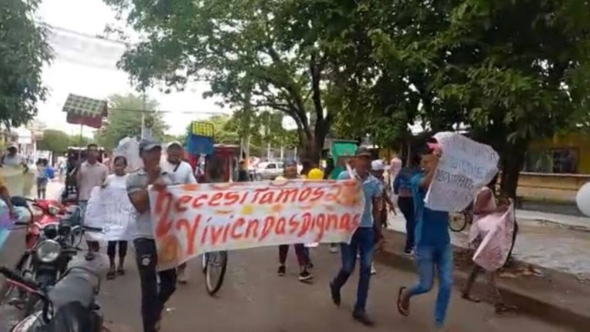 Con pancartas y arengas, los manifestantes se pasearon por las calles de esta localidad y llegaron desde muy temprano hasta el Concejo Municipal para pedirles a los funcionarios que aprueben el inicio de la construcción de las casas en un terreno cercano que daría beneficio a la comunidad.