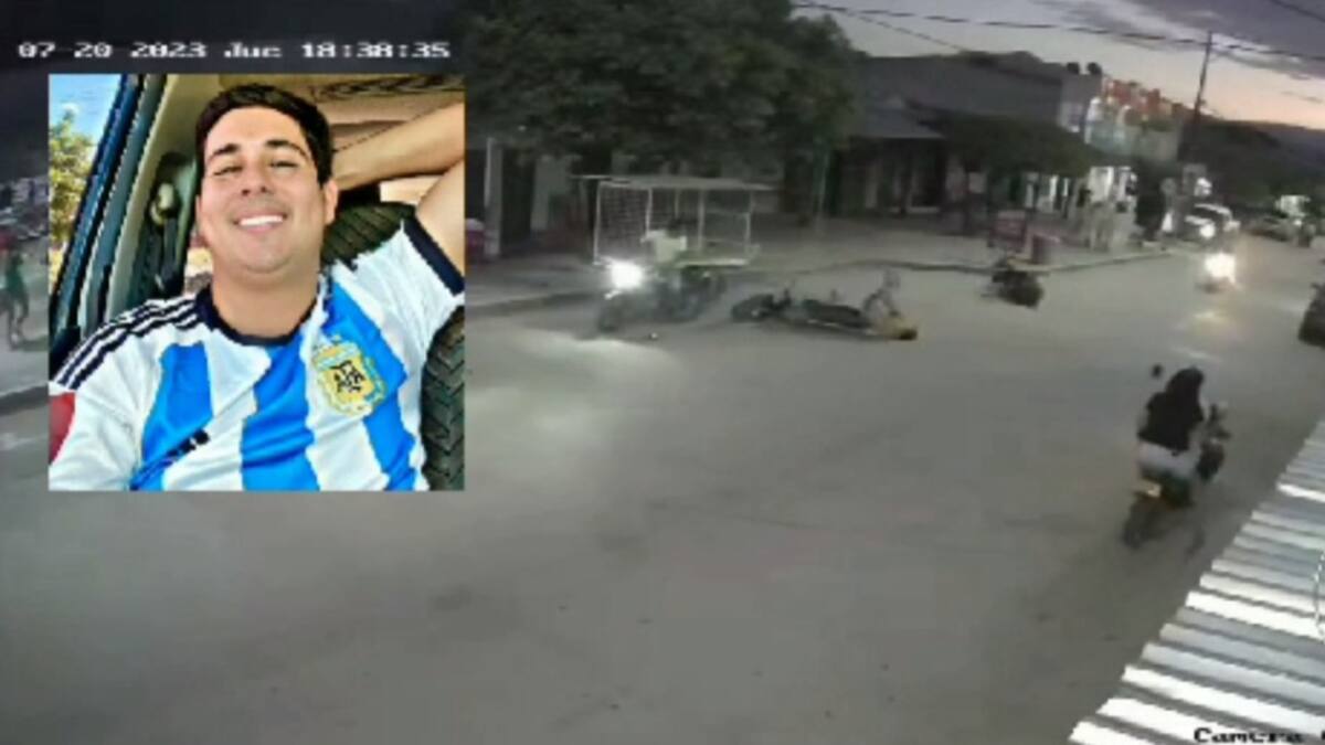 Según muestra las imágenes la víctima iba por la calle principal del pueblo y de repente el equino lo golpea fuertemente y lo hace caer de la moto.