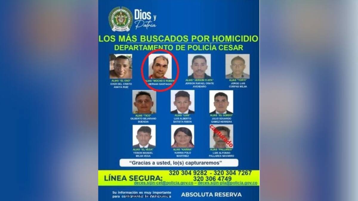 Ante el Juzgado Primero Promiscuo con Funciones de Control de Garantías de Chiriguaná, la Fiscalía le imputó cargos a Hernán Santiago, de 47 años, conocido como 'el Mocho’, capturado recientemente y quien figuraba en el cartel de los más buscados por homicidio en el Cesar.
