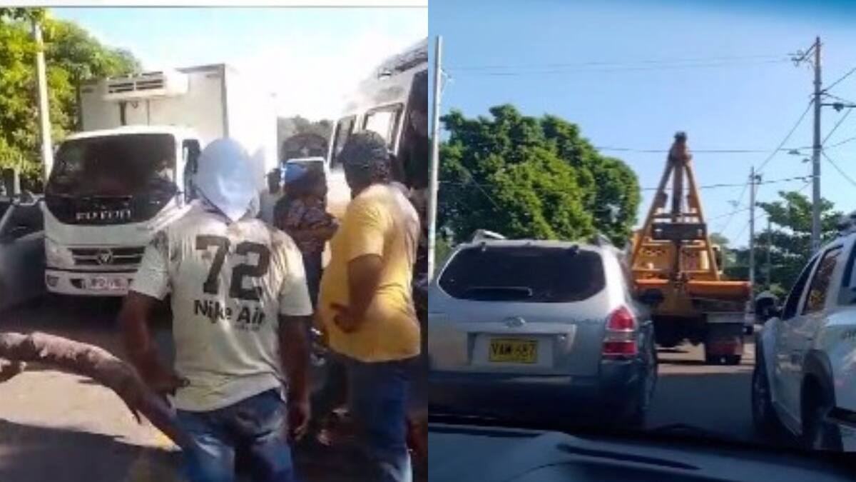 El trancón es a la altura del corregimiento Los Brasiles, perteneciente al municipio de San Diego. Los contratistas alegan que no les han pagado por los trabajos realizados de mantenimiento periódico de la vía y del peaje.