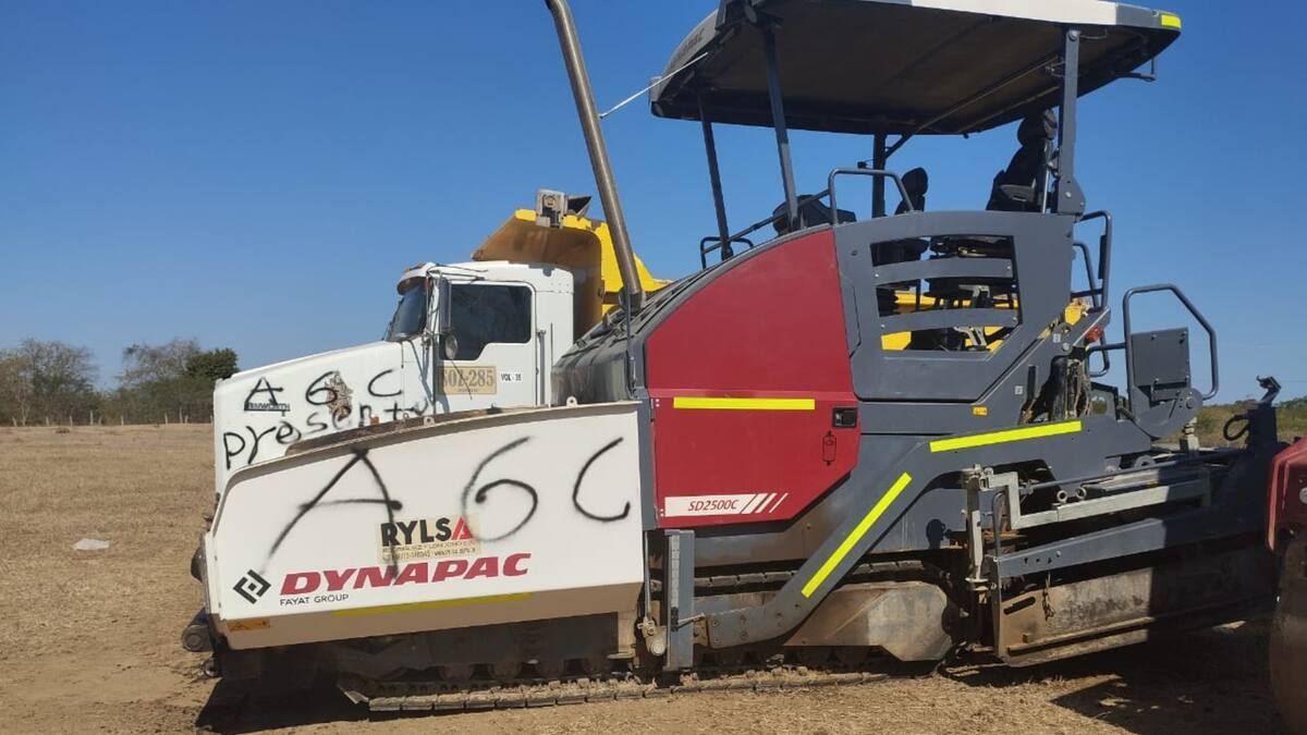 Diferentes maquinarias propiedad de una contratista que presta los servicios a la Gobernación del Cesar, en el plan vial de pavimentación que se ejecuta en zona rural del municipio de Astrea, fueron marcadas con grafitis alusivos de las AGC.