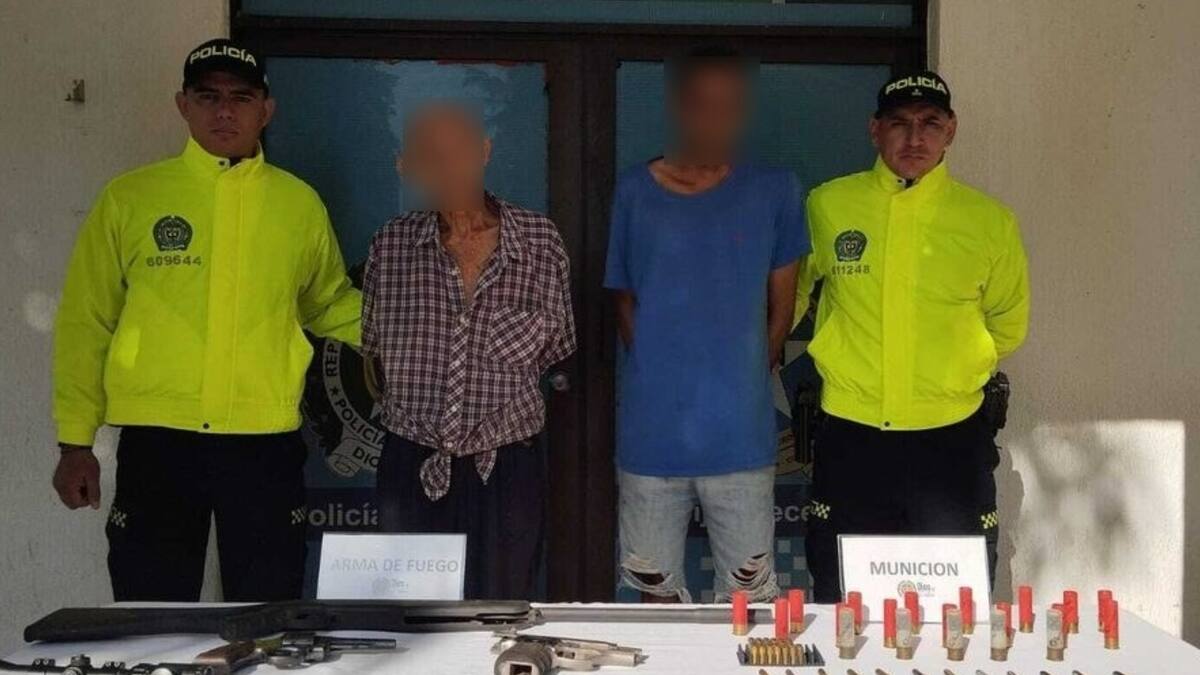 El allanamiento dejó capturado en flagrancia a dos ciudadanos identificados como Luis Emilio Negrete Borrego, de 84 años, y Jan Carlos Negrete Fragoso de 44 años. Ambos deberán responder por el delito de fabricación, tráfico o porte de armas de fuego.