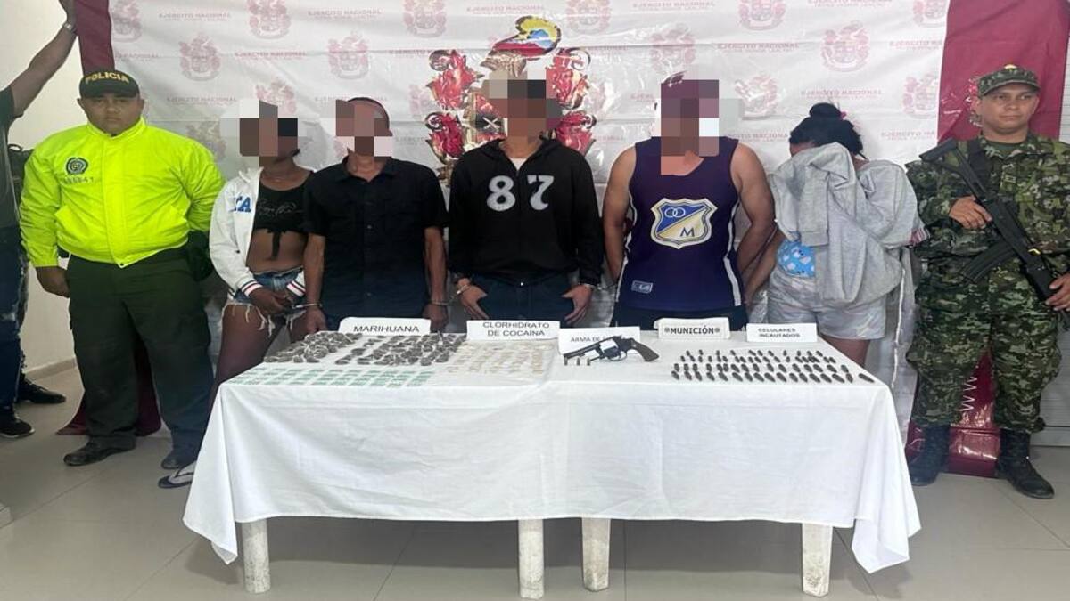 Así mismo, se les incautó un revólver, más de 60 cartuchos diferentes calibres, 80 gramos de marihuana, 41 gramos de clorhidrato de cocaína y 100 gramos de pasta base de coca.