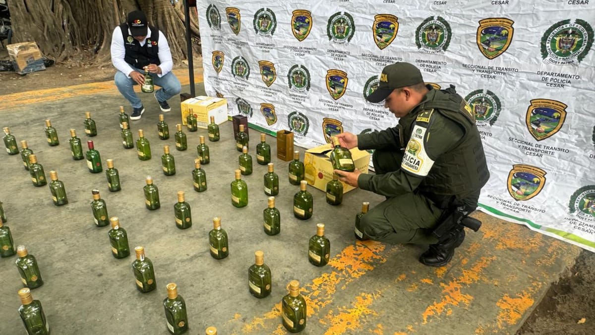 Asimismo, decomisaron 65 botellas vacías de whisky de una marca reconocida, las cuales pretendían ser ingresadas al municipio de Valledupar para posiblemente ser re envasadas y comercializadas durante el Festival Vallenato.