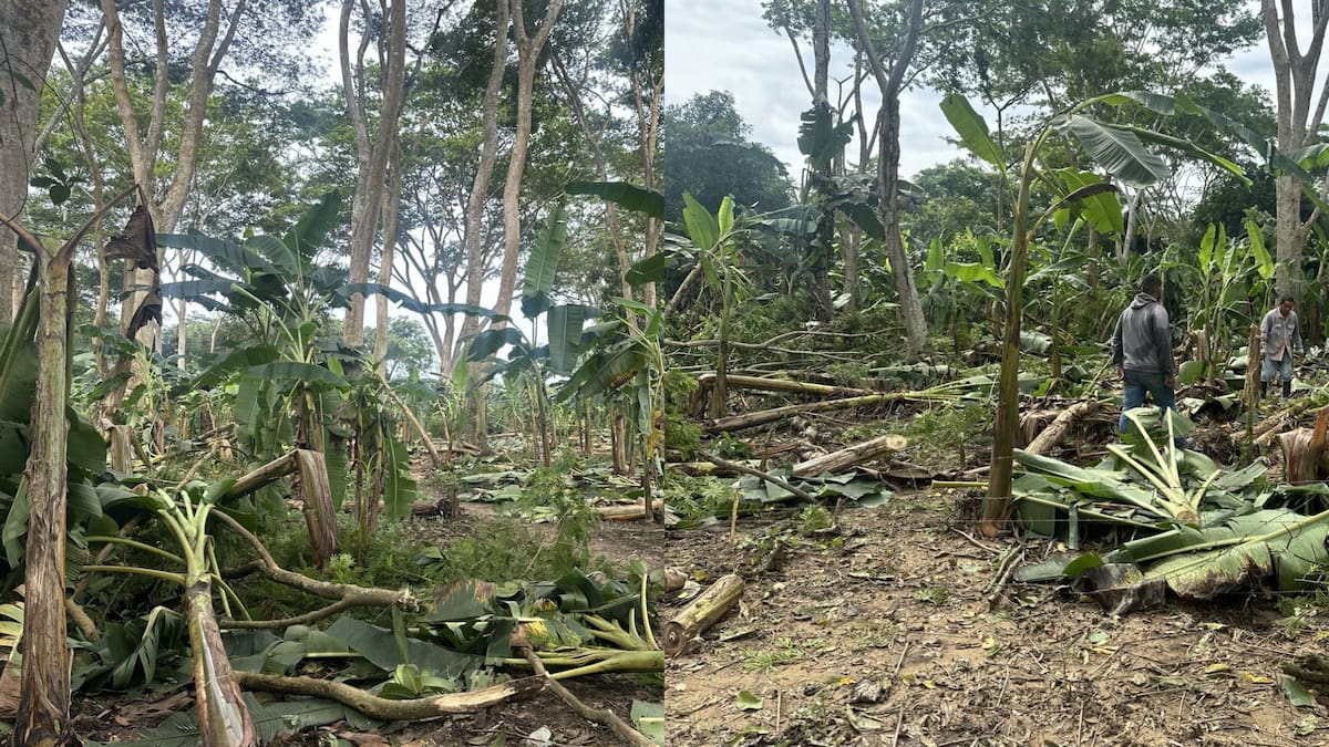 “En esta zona del municipio ese tipo de lluvias y vendaval siempre se presenta, pero en agosto y cada dos años, en esta oportunidad se nos adelantó y nos tomó a todos por sorpresa. Acá vivimos de lo que producimos en la tierra y el plátano es una tradición cultivarlo, hay otras siembras como de maíz y aguacate, pero son más pequeñas”, expresó Robles.