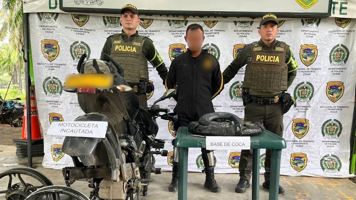 La Seccional de Tránsito y Transporte del Cesar capturó en flagrancia, a un sujeto de 34 años de edad, quien transportaba aproximadamente 5 kilogramos de base de coca en una motocicleta, sobre la ruta La Jagua de Ibirico hacia la Guajira.