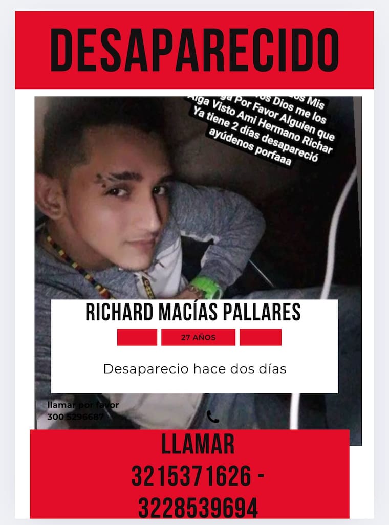 Los disparos que sufrió Richard fueron en el abdomen y la cabeza, según indicaron sus familiares, que al ser avisados por un campesino de la red de cooperantes se desplazaron hasta la mencionada trocha y reconocieron el cuerpo.