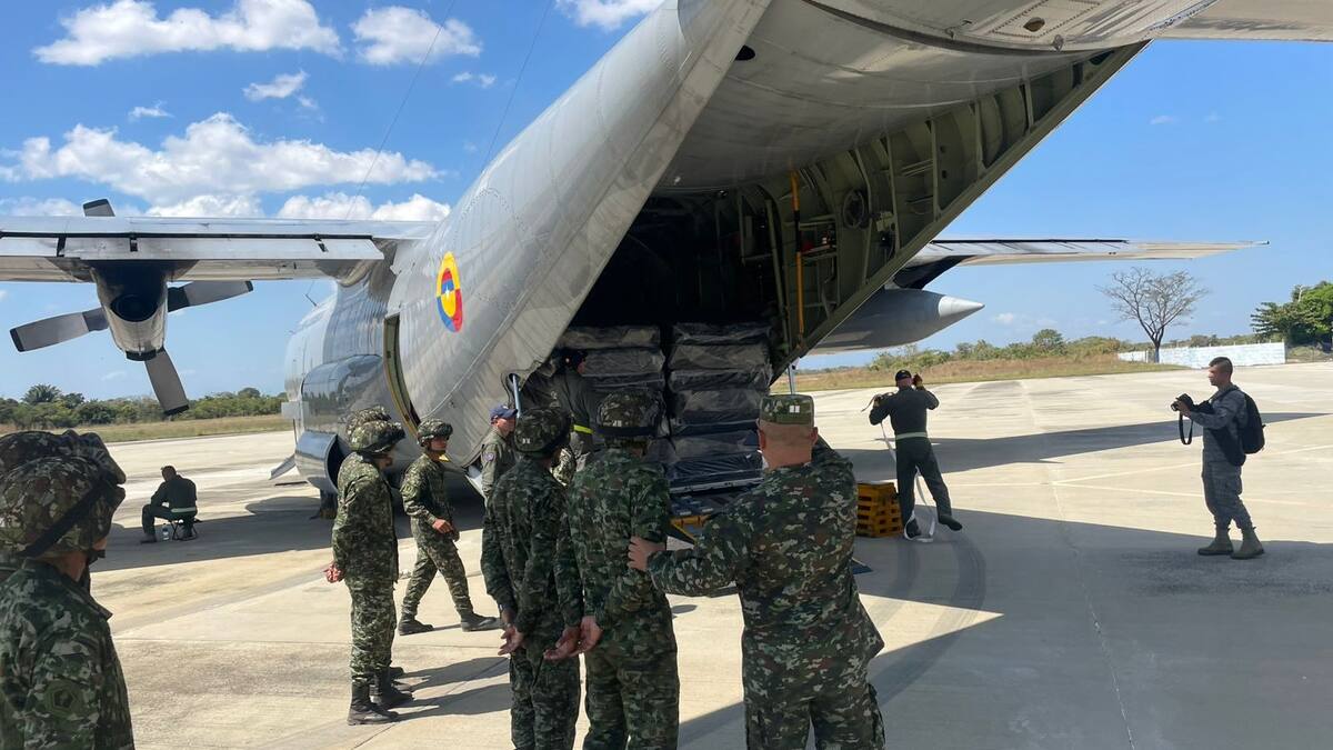 En total han sido 14 toneladas en una aeronave C130 Hércules hasta el Hacaritama, por ser el punto más cercano de aterrizaje para que los entes territoriales competentes puedan entregar la ayuda humanitaria en Ocaña, Norte de Santander.