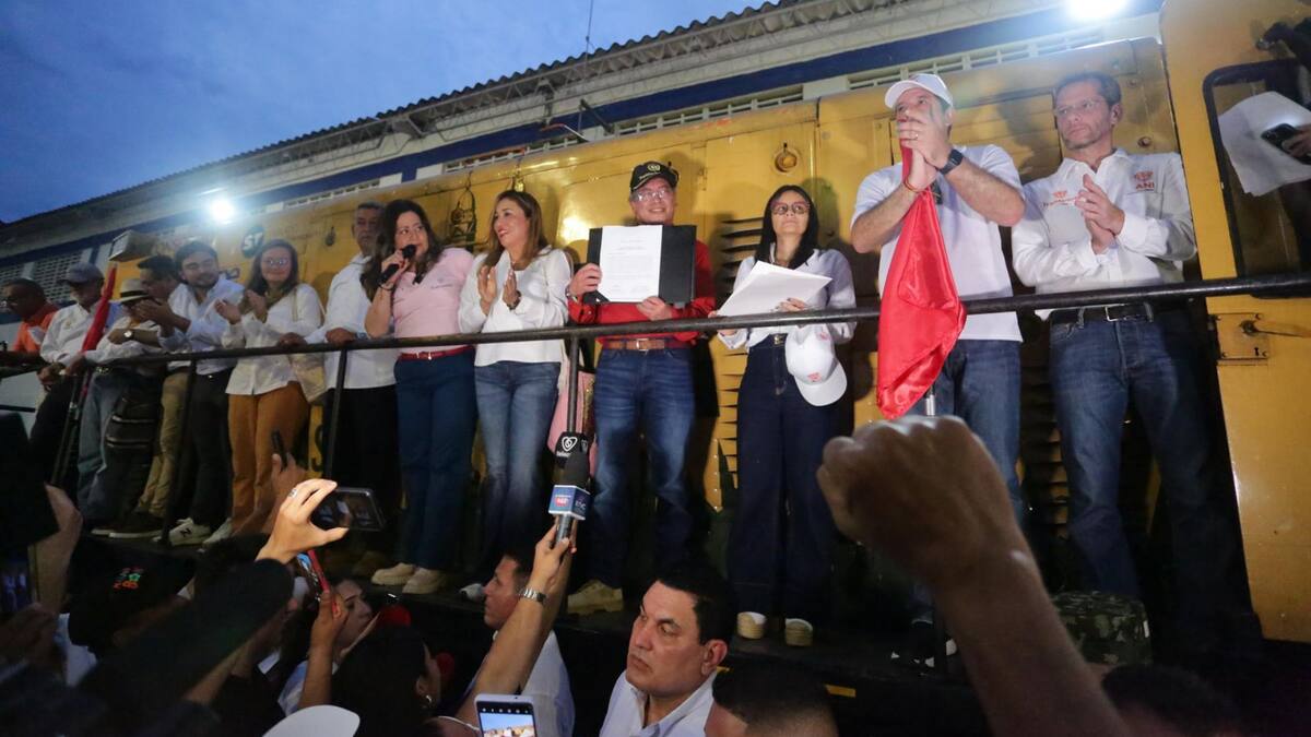El presidente Gustavo Petro Urrego, la ministra de Transporte, María Fernanda Rojas Mantilla; el director de la Agencia Nacional de Infraestructura (ANI), Óscar Javier Torres Yarzagaray, y Carlos Bueno, representante legal de la Concesión Línea Férrea Central, firmaron en La Dorada (Caldas) el contrato de concesión que es considerado la columna vertebral de la reactivación ferroviaria que conecta el centro del país con los puertos del Caribe.