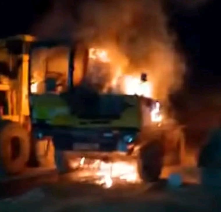 En total fueron una motoniveladora, un bulldoxer, una vibro compactadora, y una retroexcavadora, que terminaron en fuego e incineradas, al colocarles material explosivo.