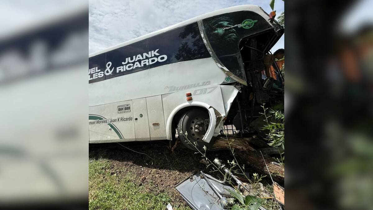 El reporte señala que los ocupantes del bus resultaron ilesos, aunque algunos presentaron golpes leves. En las imágenes, compartidas en redes sociales, se nota que la cabina del bus quedó destruida. El conductor resultó ileso.