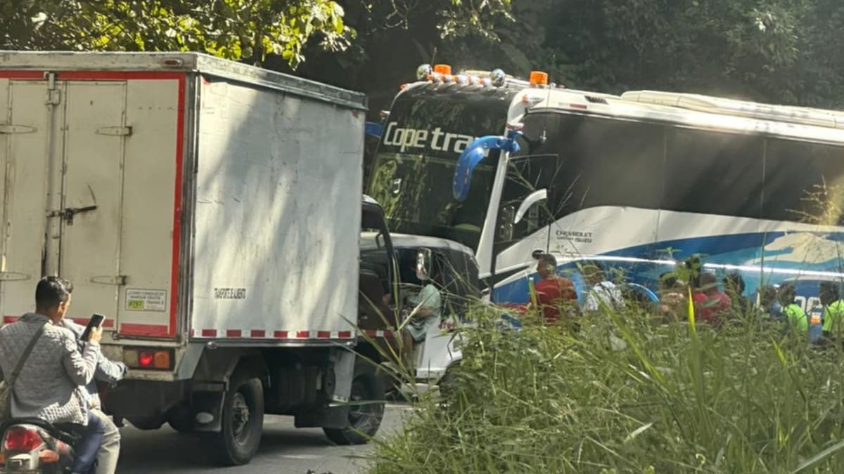 El siniestro se presentó cuando un bus de la empresa Coopetran iba subiendo al pueblo y en una de las curvas, dos motocicletas chocaron de frente con este inicial vehículo.