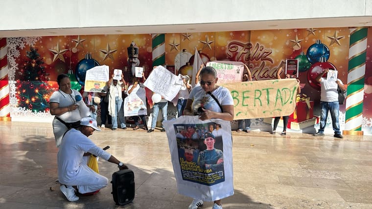 En las afueras de la Gobernación del Cesar, los familiares del soldado Víctor Hugo Yépez García realizaron un plantón pidiendo ayuda al presidente Gustavo Petro para que el joven militar sea liberado tras permanecer secuestrado desde el 14 de noviembre por el GAO-r Estructura Carlos Patiño, de las disidencias de las Farc, en el sector de Guadualito, en Bilbao, Cauca.