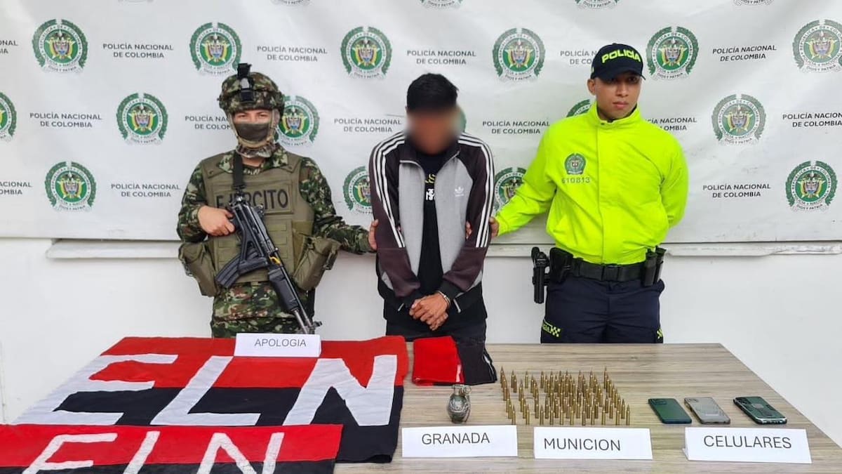 Destacaron que durante el procedimiento incautaron 85 cartuchos calibre 5.56, una granada IM26, tres banderas alusivas al ELN y 3 teléfonos móviles.