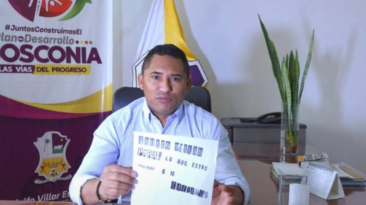 'Edulfo Villar, para lo que estás haciendo o te callamos', dice el texto en una hoja, sin distintivos o logos que identifiquen a alguna estructura al margen de la ley. Los registros de la cámara de seguridad muestran a un hombre que de manera sigilosa llega hasta la casa del alcalde con el rostro cubierto y usando elementos en sus manos para no dejar huellas al introducir el documento que está siendo analizado por las autoridades.
