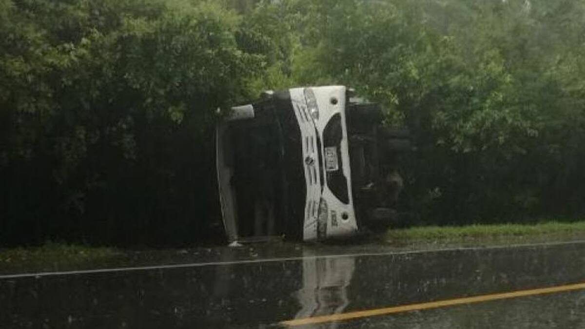 El accidente ocurrió hacia las 10 de la mañana, cuando llovía en el sector donde terminó volcado el automotor con los jugadores del Real Boyacá.