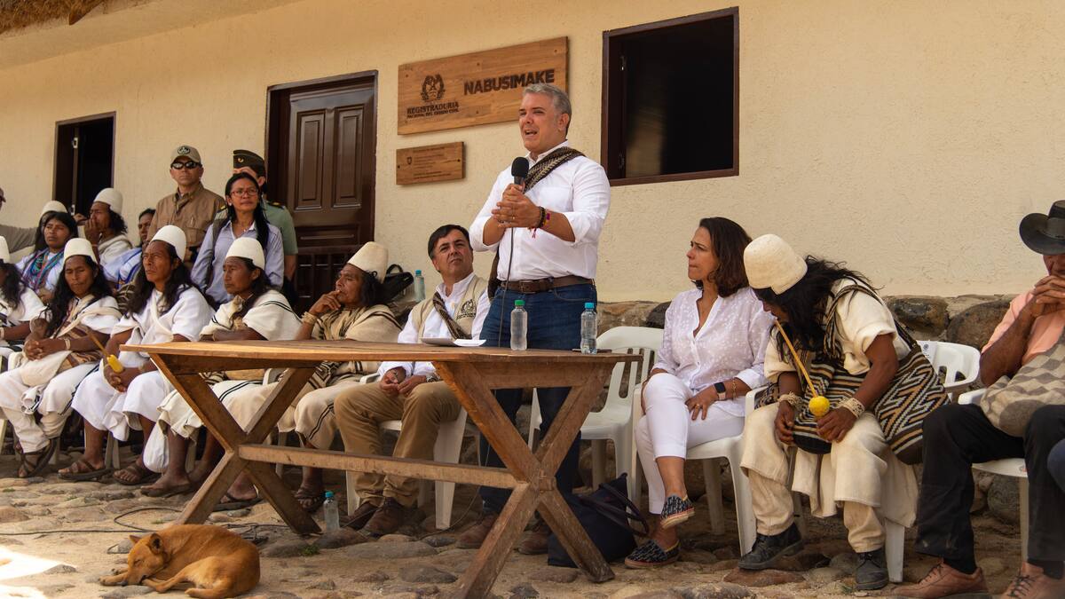 El presidente Iván Duque entregó este viernes en Nabusímake, la capital sagrada del pueblo arhuaco, la primera sede indígena de la Registraduría del Estado Civil en Colombia, reiterando el compromiso de su gobierno con las comunidades ancestraleas.