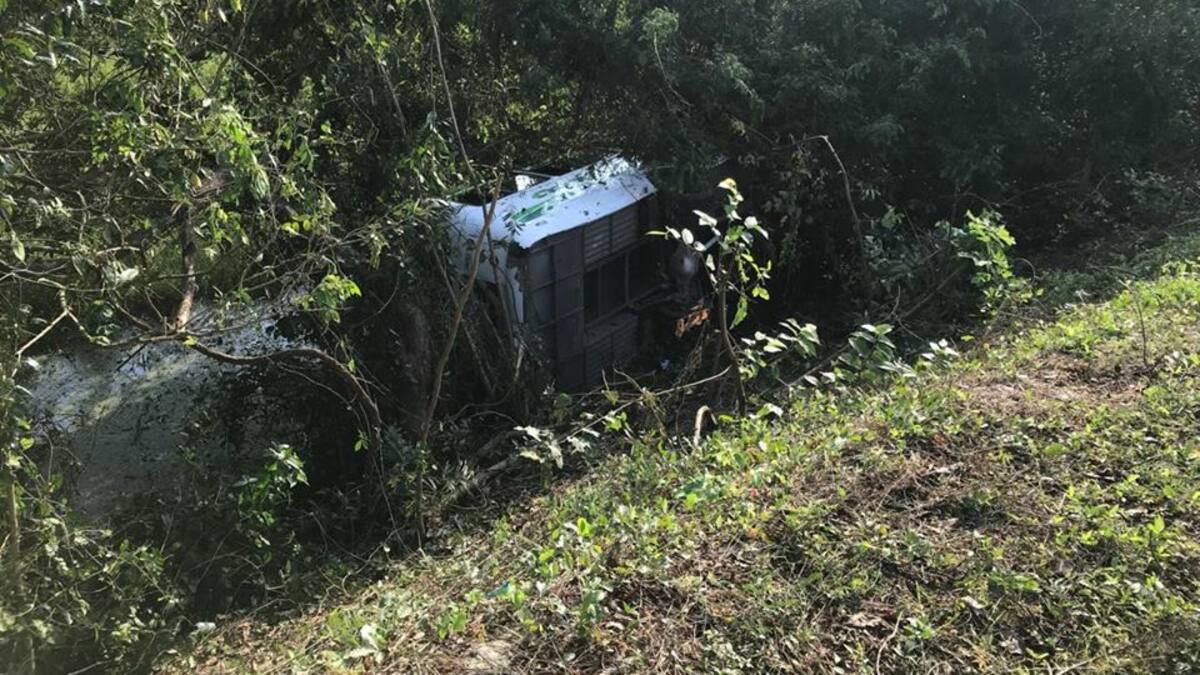 El siniestro sucedió debido a la pérdida de control del bus de servicio público por parte del conductor por lo cual el vehículo se salió de la vía y terminó volcado.