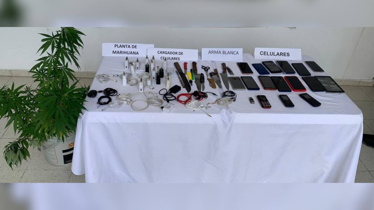 La Policía Nacional realizó una intervención en la Cárcel Municipal de Chiriguaná, Cesar, donde incautaron 16 dispositivos móviles, 13 armas blancas- cortopunzantes, cargadores para celulares, una memoria USB y una planta de marihuana.
