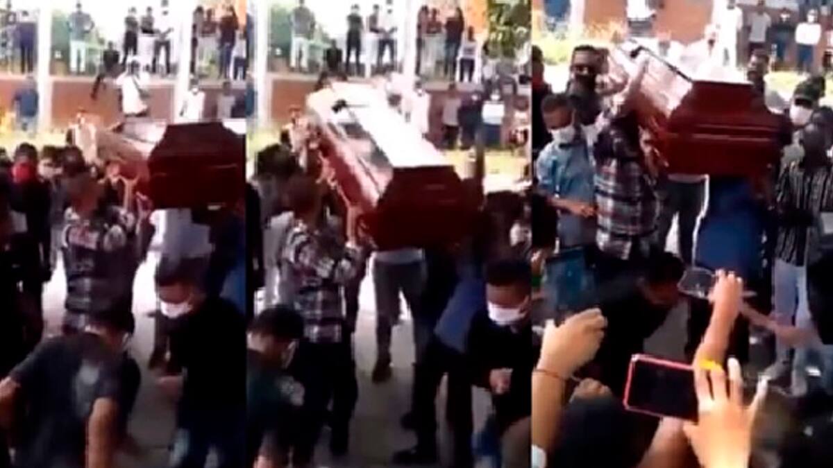 En videos que circulan por las redes sociales se observan decenas de personas en el funeral, muchas sin tapabocas, y otras bailando frente al cajón que también era zarandeado al compás de la música mientras era llevado hasta el cementerio.