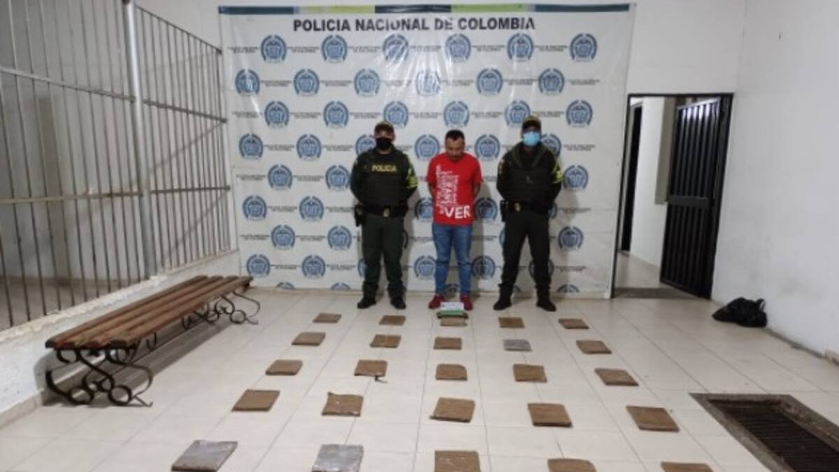 En un puesto de control, patrulleros de la Policía capturaron a un hombre que se desplazaba como pasajero en un vehículo de servicio público con 16 kilos de marihuana, distribuidos en 30 paquetes rectangulares. El conductor del automotor atendió una señal de pare de los uniformados cerca de Valledupar, donde al practicar una requisa a los ocupantes le hallaron a este sujeto entre sus pertenencias la droga avaluada en 32 millones de pesos.