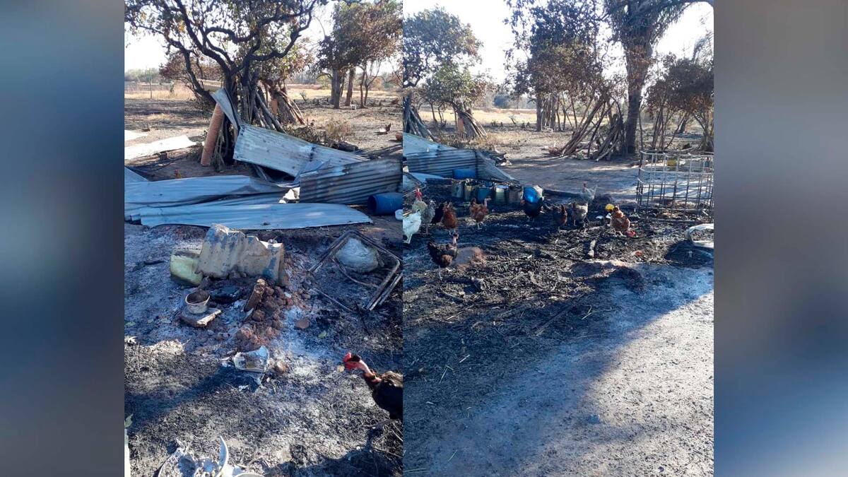 Varios animales como perros, ganado y gallinas, así como un carro resultaron quemados por el fuego que se extendió rápidamente hasta la parcela por las fuertes brisas que se registran en la zona.