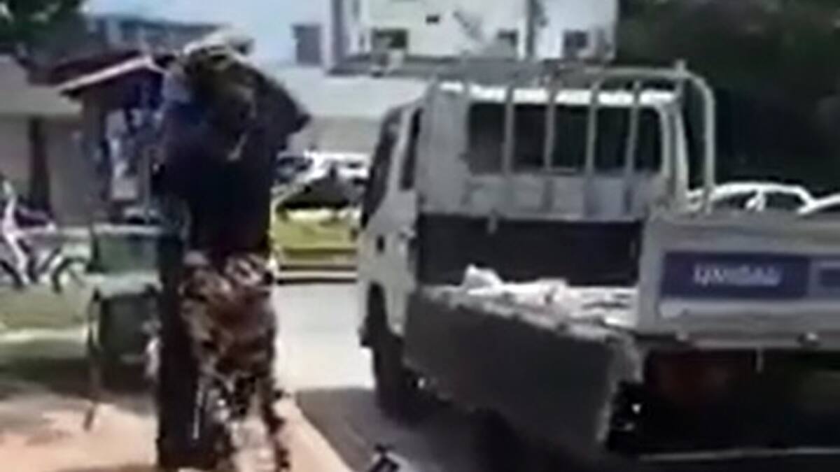 Un operativo de control al espacio público en Valledupar desató la ira de un vendedor ambulante, a quien funcionarios de la administración municipal, con apoyo de la Policía, le habían subido en un camión las vitrinas y otros elementos con los que se gana la vida en desarrollo de su actividad informal, venta de comida.