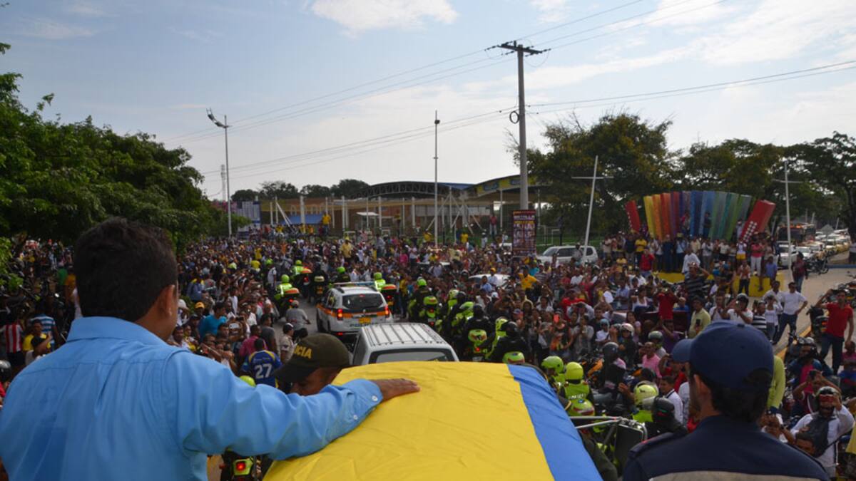 La multitud desde la madrugada se ubicó en los alrededores de la glorieta El Obelisco, en la vía que conduce a Bosconia, y luego siguió la máquina del Cuerpo de Bomberos que encabezó una extensa caravana, en un recorrido de más de dos horas, hasta el parque de la Leyenda Vallenata donde permanece en cámara ardiente.