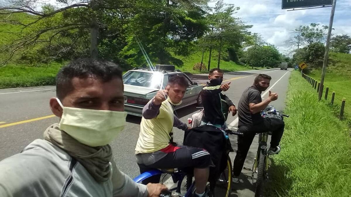 Atravesaron en las 'guerreras', como llamaron a sus bicicletas, el Ecuador, atacado fuertemente por el coronavirus, enfrentándose a montañas y zonas desérticas. Así llegaron a Ipiales, Nariño, en donde pudieron hablar con el alcalde de San Diego, Carlos Calderón, quien gestionó los recursos para que viajaran a Bogotá; en donde tampoco consiguieron transporte que los trasladara. Entonces retomaron el viaje en sus bicicletas, bajaron a Honda, tomaron la vía Panamericana y llegaron a San Alberto, Cesar, donde los esperaba una camioneta enviada por el alcalde.