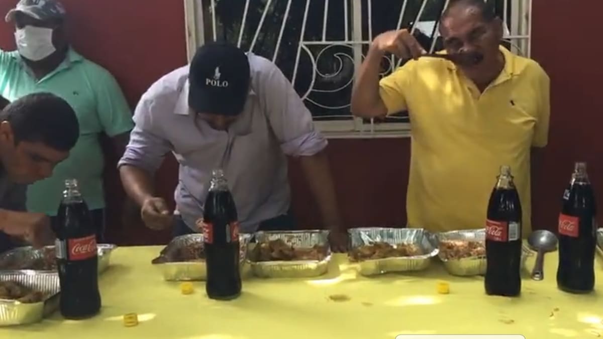 En los videos se escucha al animador advertir a la multitud de hacer silencio para evitar llamar la atención de la Policía. Frente a la mesa y en sus alrededores donde estaba la comida decenas de personas se aglomeraron para seguir la singular competencia en época de pandemia, muchos sin usar tapabocas.