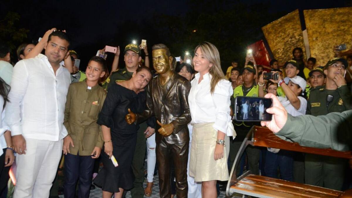 La estatua está ubicada junto a la de su padre, Diomedes Díaz, en la glorieta Los Juglares cerca al balneario Hurtado, al norte de Valledupar.