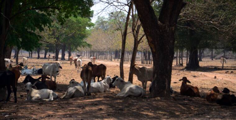 En Villa Rosa las temperaturas son tan elevadas que las reses se refugian debajo de los árboles.